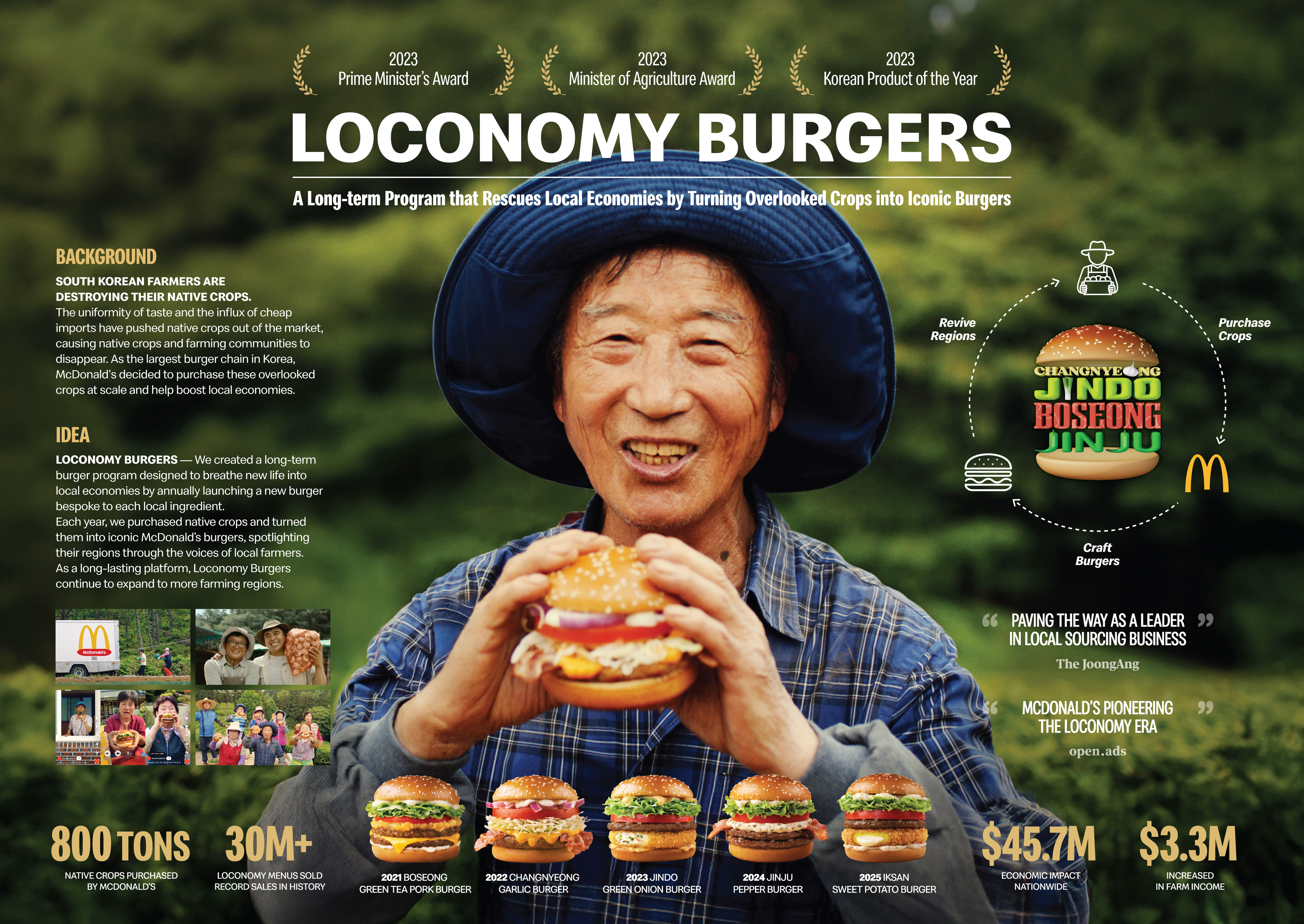 As global food is trending towards the uniformity of taste, Korea’s native crops are disappearing at an alarming pace. With no buyers for native crops, Korean farmers have no choice but to destroy them. McDonald’s created the Loconomy Burgers program, a long-term platform designed to save native crops that were dying out and rescue K...